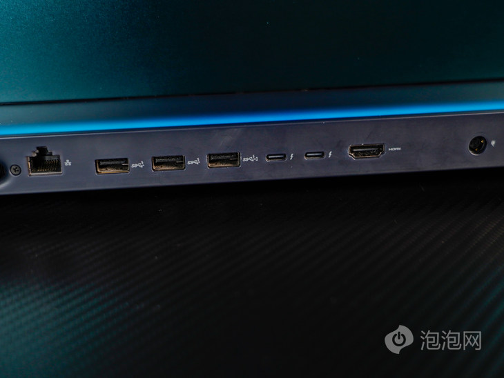 该机采用了特殊的前置反转式铰链设计,不仅实现了屏幕单手开合,且转轴稳定性拉满,开合过程无丝毫晃动,同时将除SD卡插槽与3.5mm耳机接口外的所有接口全部转移至机身后部,既保证了机身侧面的简洁统一,又避免了桌面线缆杂乱的问题。