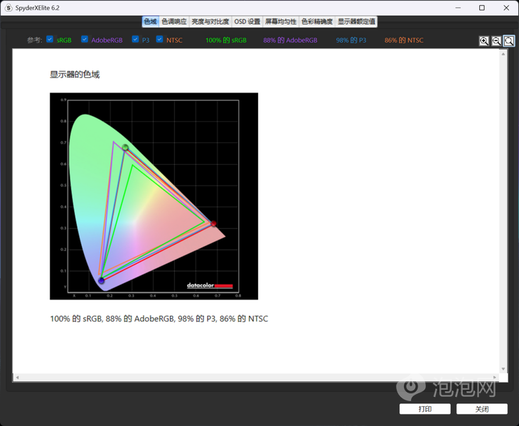 那么这块屏幕的实际素质究竟如何呢?我们依旧借助Spyder X测试仪进行了测试。亮度方面,实测Alienware外星人18 Area-51游戏本配备的这块屏幕最高亮度为515.3尼特,亮度相当不错,在环境光比较亮的情况下也能看清屏幕。