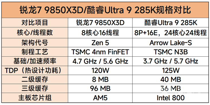 游戏性能新王驾到!AMD锐龙7 9850X3D对比Ultra 9 285K实测