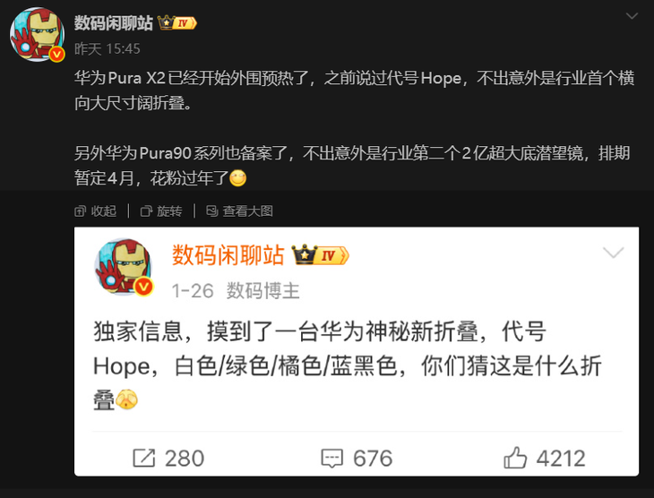 影像系统方面,Pura 90系列将配备超大底的2亿像素潜望式长焦镜头。结合顶级的长焦硬件与强劲的NPU算力,该系列的影像实力将得到全面释放,值得期待。