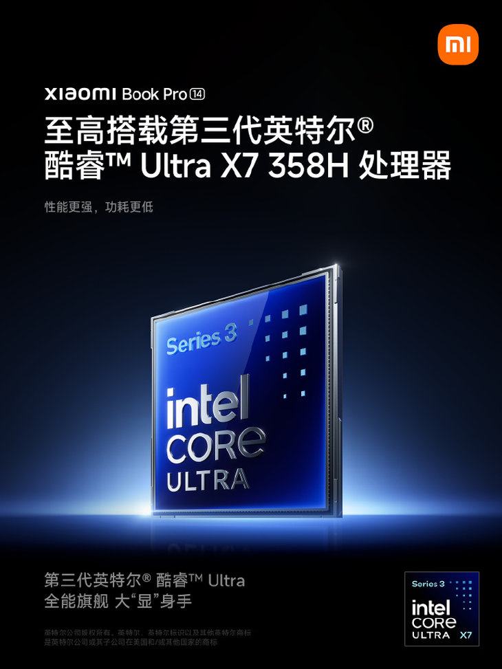 在性能方面,小米笔记本Pro 14最高搭载英特尔酷睿Ultra X7 358H处理器,基于Panther Lake架构和Intel 18A工艺打造,性能释放可达50W,并配备12Xe超级核显,图形性能媲美RTX 3050 Ti。同时,配备10000mm²超大VC散热模组、高速静音风扇及立体三风道散热系统,可流畅应对4K视频剪辑、复杂特效渲染,甚至3A游戏运行和端侧模型部署,展现出高性能轻薄本的全面实力。