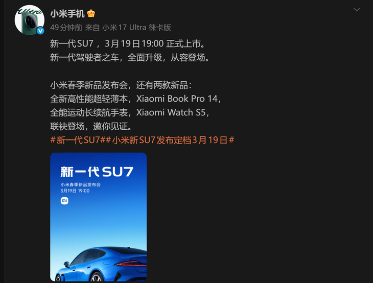 升级巨大!小米笔记本Pro 14官宣定档,与新SU7一起发布
