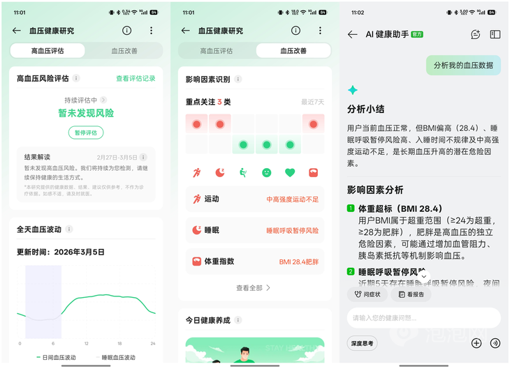 尤其是这代在无感高血压风险评估功能的重大升级,通过OPPO与中国医学科学院阜外医院联合开展《基于智能穿戴 APP 的中青年人群高血压管理研究》,验证了智能设备在助力中青年高血压患者“主动健康管理”方面的有效性,并将研究成果搬到了产品中。