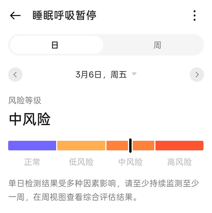 不仅如此,如果你睡觉的时候有打鼾的情况,那么还可以通过OPPO Watch X3来进行睡眠呼吸暂停检测,它可以根据身体状况来判断睡眠呼吸暂停的风险等级,给与用户风险提醒。