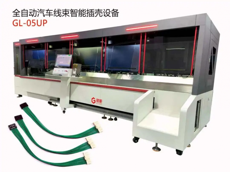 冠钜自动化专注于线束智能装备研发与制造,全新一代GL-05UP 全自动汽车线束智能插壳设备,以高精度、高柔性、高智能重新定义汽车线束加工标准。设备搭载AI 视觉 + 激光双定位系统,端子插入角度、间距精准可控,完美匹配汽车线束严苛的高精度加工要求;支持 30+线色识别、12+端子压接工艺,柔性适配多规格生产场景。工作站采用模块化设计,一站式集成穿防水栓、穿号码管、多胶壳插入等核心工序,高效精简产线流程。整机智能稳定可靠,配备压力监测+CCD 全检,实时保障加工品质;支持开线长度动态修正与智能存线,运行更平稳、损耗更低。具备MES 全链路数据追溯能力,可实时采集开线长度、压接数据、CCD 检测图像、插拔力等关键参数,实现生产过程可追溯、品质可管控。目前已成功服务多家汽车供应链头部企业,为客户提供高性价比、高可靠性的线束自动化整体解决方案。