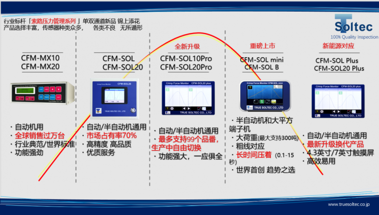 上海索路代表了另一种维度的"品质深耕”。作为安波福、立讯精密、鹤壁海昌、厦门海普锐、住友等等线束龙头企业的长期供应商和服务商,日本索路泰克(SOLTEC)在品质管控方案上的专业度毋庸置疑。一脉相承之下,从端子压接检查到智能化设备开发,“索路”的产品矩阵为线束行业提供了极高的品质安全冗余。