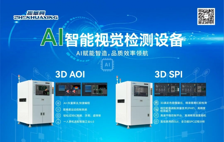 振华兴自推出国内首台AOI起已有二十余年技术累积与更新迭代,主营产品:2D/3D-AOI/AVI、3D-SPI、激光雕刻机、Wirebonding 3D-AOl、半导体芯片封装成品检测AOI等高端视觉检测设备。全系列配置简洁快速的AI一键编程,无边界深度学习技术在缺陷检测中可自动调整检测参数,功能强大、算法精准的自主软件更为电子制造增效降本保驾护航!