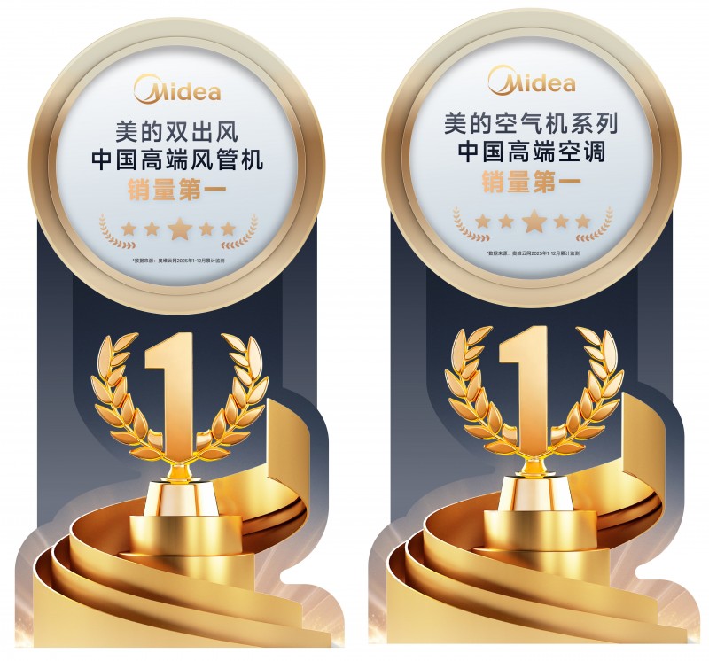 这种“定义新标”的能力,不仅体现在核心参数上,也体现在产品形态的创新上。例如美的另一款AWE“爆款”机型——美的双出风风管机。作为“第二代风管机”,它以颠覆性的上下双出风口设计,彻底终结了传统风管机“要么直吹、要么不均”的难题。制冷时双风口联动,冷气均匀弥散不直吹;制热时热流自下而上,实现“暖从足起”的地暖式体验。凭借差异化的产品形态和舒适体验,美的双出风风管机稳居中国高端风管机销量靠前。“不是所有的风管机都叫双出风”,美的正在建立品类标准,而非跟随既有标准。