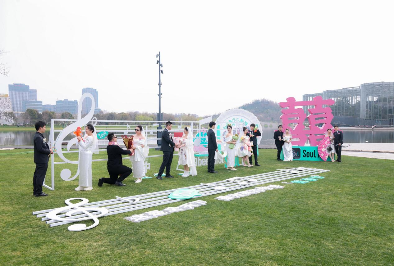 3月22日,一场名为“山盟海誓 爱在浦东”的集体婚礼,于世博文化公园音乐之林草坪举行。在活动现场,协办方Soul APP与百对新人一起,共历他们人生中的重要时刻。