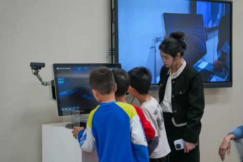 孩子们戴上VR眼镜,感受itc最新研发的AR/VR虚拟仿真教室解决方案。系统内置虚拟现实(Virtual Reality)和增强现实(Augmented Reality)技术,集成了传感器、计算机处理单元、显示屏和交互控制器等先进设备,搭配专业的3D视频资源,可有效增强互动体验和沉浸感效果,极大地提升孩子的学习兴趣。孩子们在体验中惊叹声此起彼伏:“哇塞,好神奇!”。这一刻,他们心中探索科学的种子悄然种下,对未来充满了无限的憧憬。