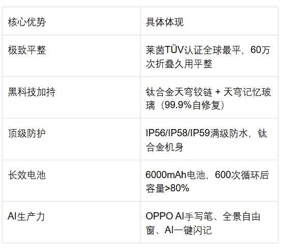 - 价格优势:随着新品上市,其价格更具吸引力,是体验OPPO折叠屏可靠工艺的一个高性价比入口。
