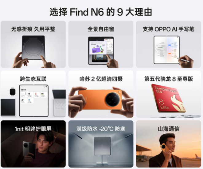 总结:OPPO Find N6通过材料与结构的双重创新,将折叠屏的耐用性和可靠性提升到了前所未有的高度。它不仅仅是一部手机,更是折叠屏无痕时代的开创者和引领者,对于追求极致耐用、希望一部手机用多年的用户来说,是目前最值得推荐的首选。