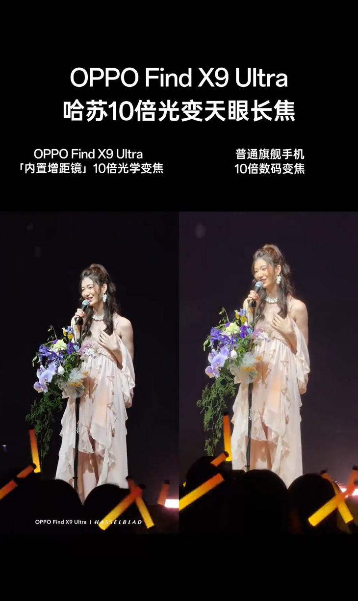与常见的10倍数码变焦产品相比,Find X9 Ultra在细节、色彩和光影效果上都有显著提升。卓世杰指出,依托于内置增距镜和定制的大底传感器,OPPO将10倍焦段的视频清晰度提升至真4K 60fps的新高度,使得演唱会偶像的发丝细节不再模糊,而是通过原生光学镜头真实捕捉到的质感。