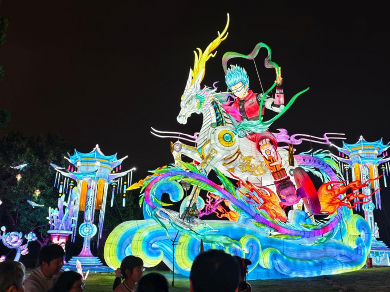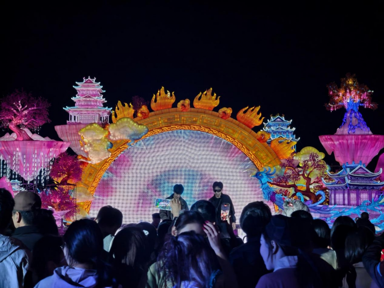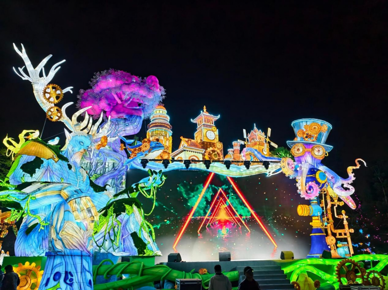 它和常见的景区夜游并不一样。很多夜游项目停留在“灯光亮起来了、拍几张照片、走一圈结束”的层面,而“厦门园博苑花灯乐园”更强调夜晚内容的完整性。这里不是简单把灯组作为主角陈列出来,而是以花灯营造整体氛围,再将 特色大秀、沉浸式NPC互动、街头演艺、电音节氛围、非遗体验、餐饮小吃 等内容串联进同一个空间里,让游客在游逛过程中始终有东西可看、有内容可参与,也有情绪被不断带动起来。