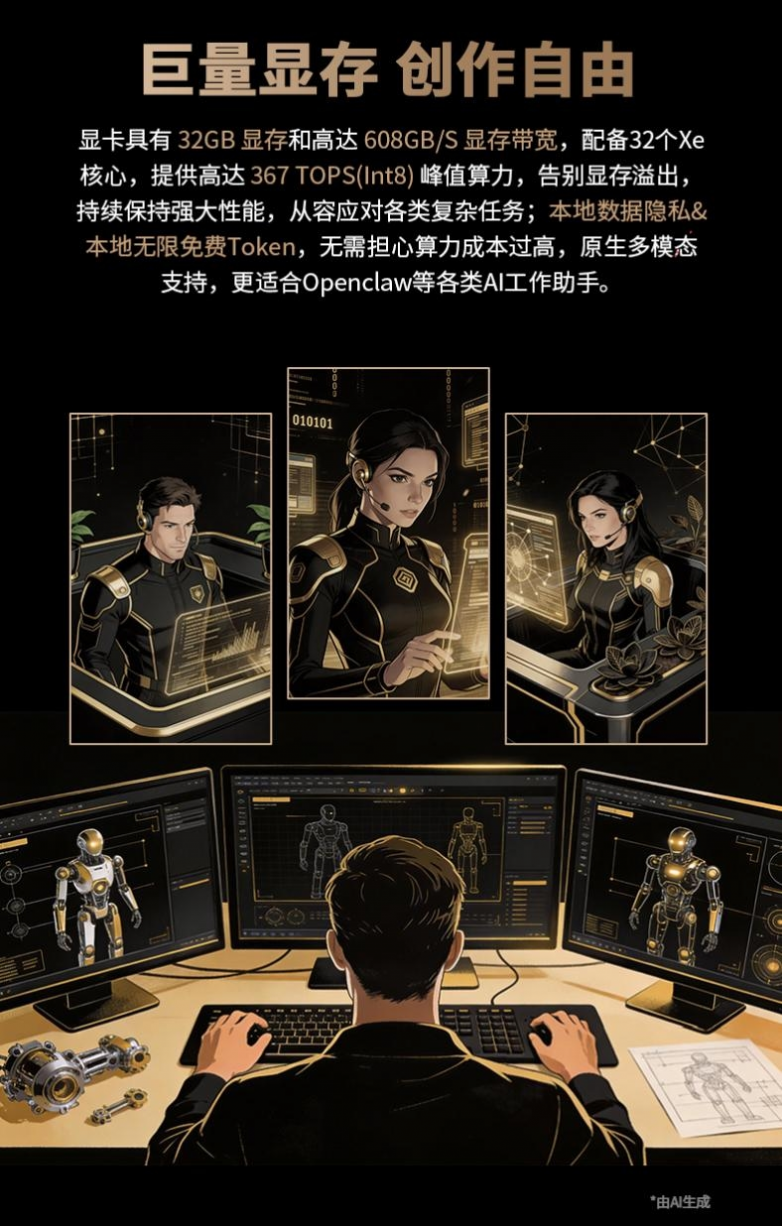 在AI与生产力深度结合的时代里,硬件性能的边界决定着创新所能触及的高度。铭瑄Intel Arc Pro B70系列显卡,不仅以32GB超大显存和卓越算力为专业用户突破瓶颈,更通过软硬协同的生态布局,将“可靠”与“高效”刻入产品基因。从多卡协同的灵活部署到服务器级的长时稳定运行,铭瑄Intel Arc Pro B70系列将以全能姿态,助力AI落地、赋能创作自由,以技术创新回应时代需求。