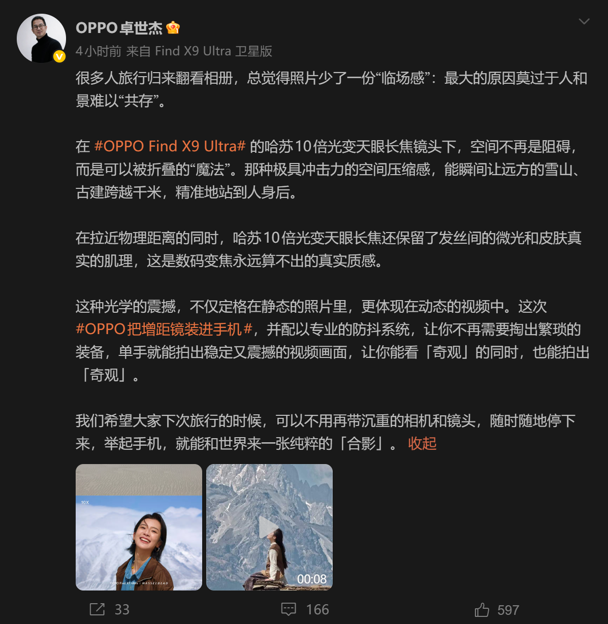 OPPO卓世杰微博原文