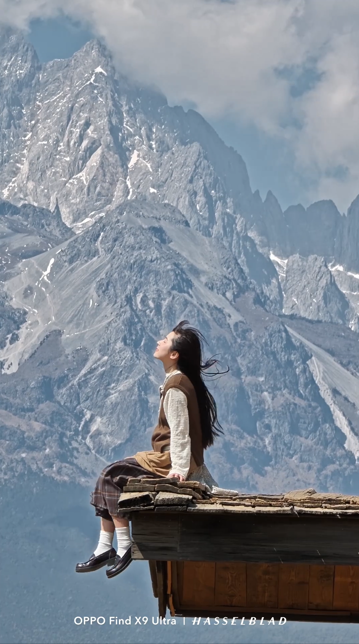 卓世杰标识,这颗长焦镜头不只是“看得更远”,而是借助10倍光学变焦带来的强烈压缩效果,远在千米之外的雪山、古建筑可以轻松被“拉到”人物身后,让人像与远景自然同框。这样的构图不仅更具视觉冲击力,也让旅拍画面更有故事感和氛围感,过去需要专业摄影设备才能实现的效果,如今在手机上就能完成。