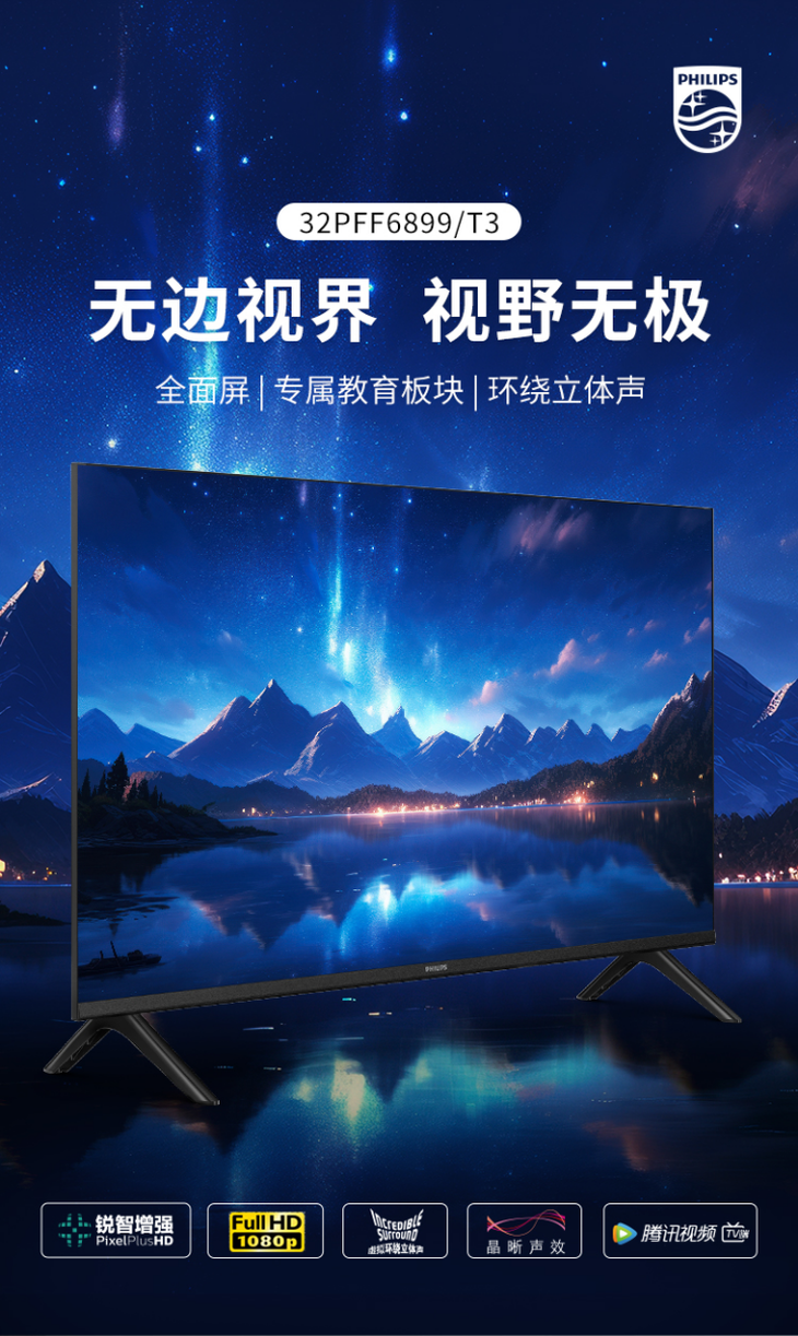 还在为电视开机广告烦恼?还在找一台画质清晰、运行流畅、孩子能学、全家能看的高性价比智能电视?飞利浦32PFF6899电视强势来袭,无广告体验 + 全高清画质 + 丰富内容,小尺寸也有大体验,卧室、书房、客房放一台,完美适配全家需求。