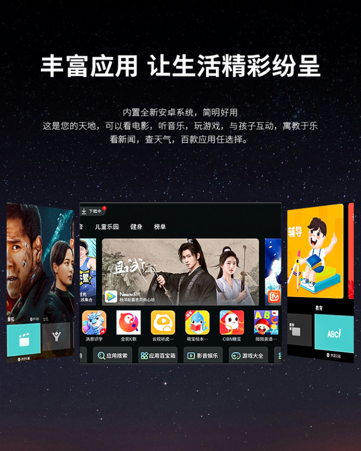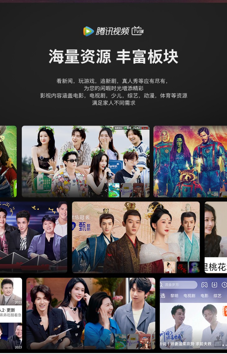 覆盖各大主流内容平台,海量优质热门电影电视剧、综艺、纪录片、动漫等视频资源全家爱看。无论是院线新片、热播剧集、搞笑综艺,还是高分纪实、少儿动画、精品短剧,一站式满足全家观影需求,一应俱全,随心点播,打开电视就是精彩世界,海量内容看不停,每一天都有新惊喜。