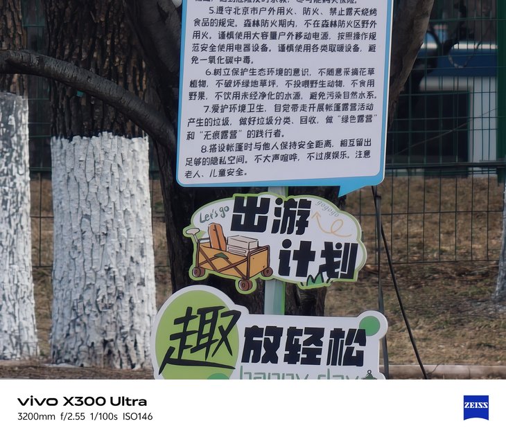 距离二百米左右的公园标牌,在它的3200mm超长焦段下依旧能清晰辨认文字。