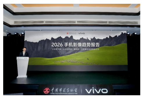 启动仪式现场,vivo与中国摄协共同发布《2026手机影像趋势报告》。报告主题为“以场景为轴,以创作为核:重构下一代影像全链路智能生态”,系统梳理了移动影像发展的核心特征与未来方向,从场景焕新、专业突破、审美提升、AI赋能、行业协同五个维度,为行业构建起科技、文化与全民化三位一体的发展范式。