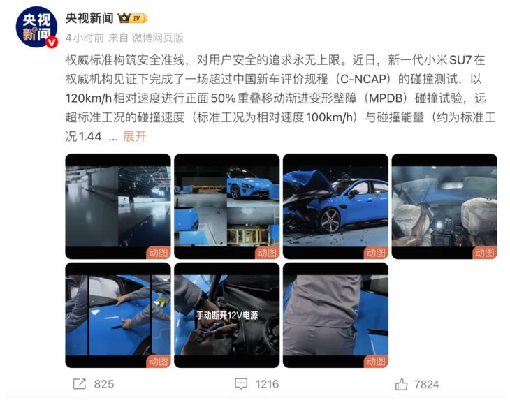 没得黑!央视发文肯定小米SU7安全性,防护实力远超行业标准