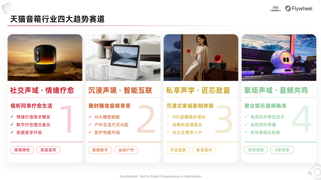 基于此,TMIC和Flywheel飞未共同发布《2026天猫音箱音响行业白皮书》,通过对音箱音响品类市场动态、技术趋势、消费心智及四大核心赛道的深度解读,为品牌创新与市场布局指明了全新方向,以期推动整个行业在智声融合、场景共生的浪潮中,持续探索声域的边界与价值的深度。