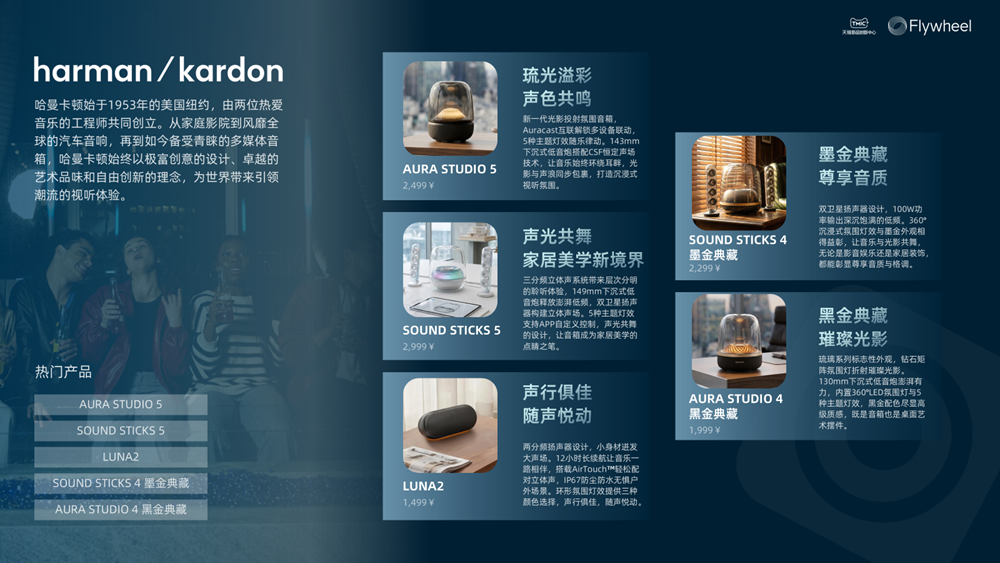 哈曼卡顿作为融合艺术与科技的高端音响品牌,其每一款产品都将艺术化设计与前沿声学技术无缝融合,在满足高保真听感的同时,还以巧妙的灯光与形态设计,构建出立体化的沉浸场景。AURA STUDIO 5与黑金典藏版AURA STUDIO 4以琉璃造型与璀璨光影营造空间美学;SOUND STICKS 4与墨金典藏版SOUND STICKS 5则通过App控制与多主题灯效,实现桌面场景的声光联动;LUNA2凭借长续航与IP67防护,成为移动场景中的便携音质伴侣。这些产品不仅传承了品牌对艺术与创新的坚持,更精准回应了年轻消费者将音响视为生活美学与情绪载体的新需求。