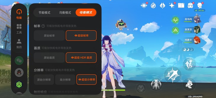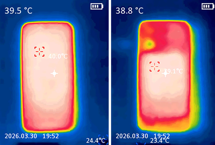 在对性能要求更高的《原神》测试中,开启高画质+60帧设置,采用那夏镇跑图模式,半小时游戏过程中,PerfDog性能狗测试的平均帧率稳定在60fps满帧,游戏画面流畅细腻,没有出现任何卡顿、降频现象。散热方面,半小时游戏后,手机正面最高温度仅39.5℃,背面最高温度仅为38.8℃,在同价位机型中表现堪称上乘。