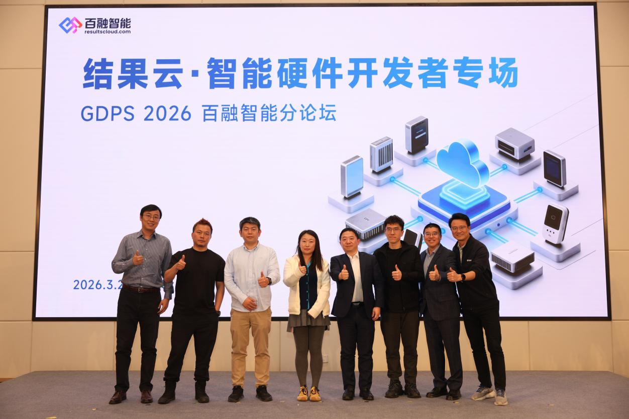 【北京】3月27日,GDPS 2026百融智能分论坛・结果云・智能硬件开发者专场于上海启幕。企业级AI Agent领航者百融智能(原百融云创6608.HK)锚定智能硬件赛道新机遇,以Results Cloud“结果云”平台(RC)生态为核心主轴,重磅输出生态落地实践逻辑,集中显影语音Agent领域技术先进性与产业落地能力,同步发布百融AIoT平台及百智WiseNote录音卡片双品。此次双品发布并非单一产品落地,而是RC生态在智能硬件赛道的关键实践落子,完成RC生态从技术底座到场景应用的全链路闭环验证,彰显领航者的技术硬实力先进性与产业布局远见。