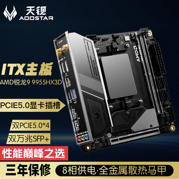 继去年推出全球首款搭载AMD锐龙9 9955HX3D处理器的MoTD M-ATX规格主板后,天钡近日带来了更为紧凑的ITX规格新品,型号为TI95X3D。目前这款新品已正式登陆电商平台开启销售,官方标价4999元,可享满4000元减200元的首发优惠,到手价4799元,同时厂商为产品提供三年质保服务。