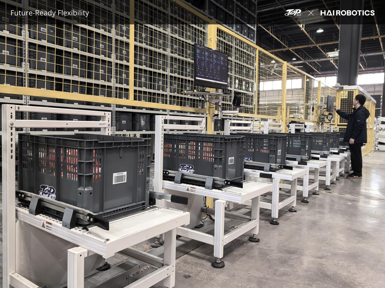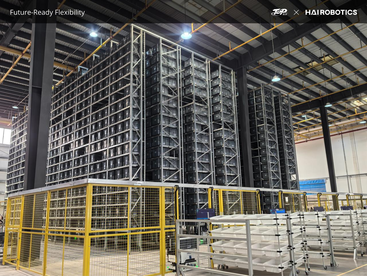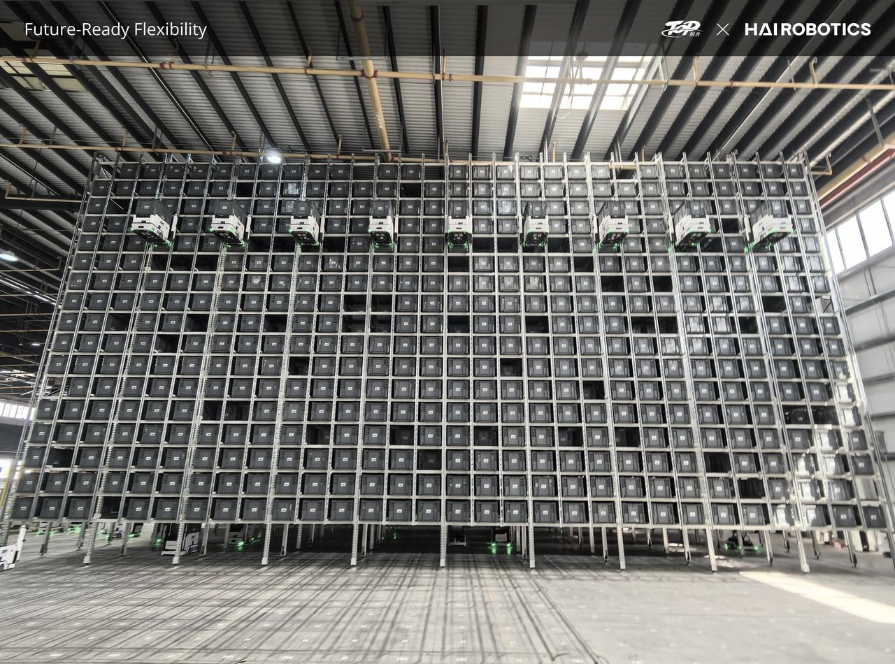 依托海柔创新智能系统与闪攀机器人协同作业,脱普供应链科技鄂州基地仓实现日均35000单的高效履约。