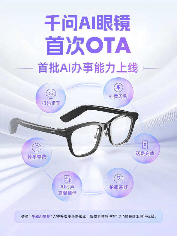 首个可充值话费、扫码骑车、点外卖的AI眼镜:千问AI眼镜首次OTA升级