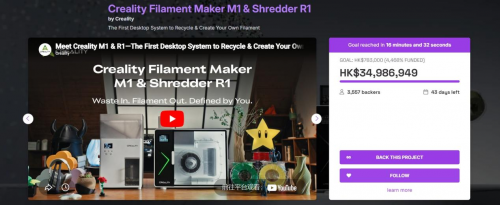 3月31日,全球消费级3D打印生态领创者创想三维(Creality)重磅推出的Creality Filament Maker M1&Shredder R1(耗材生成器M1 & 粉碎机R1)正式登陆全球最大科技众筹平台之一Indiegogo。