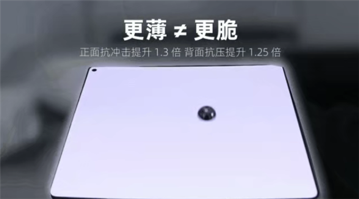 值得一提的是,该产品还打破了“更薄即更脆”的行业认知,配套专有高抗冲击柔性AMOLED屏体方案,大幅提升屏幕耐用性。经测试,其正面抗冲击力较常规产品提升1.3倍,可轻松应对尖头、手写笔撞击等日常意外场景;背面抗压性能提升1.25倍,能有效抵御背包挤压、指压等外力影响,真正实现轻薄与抗造兼具。