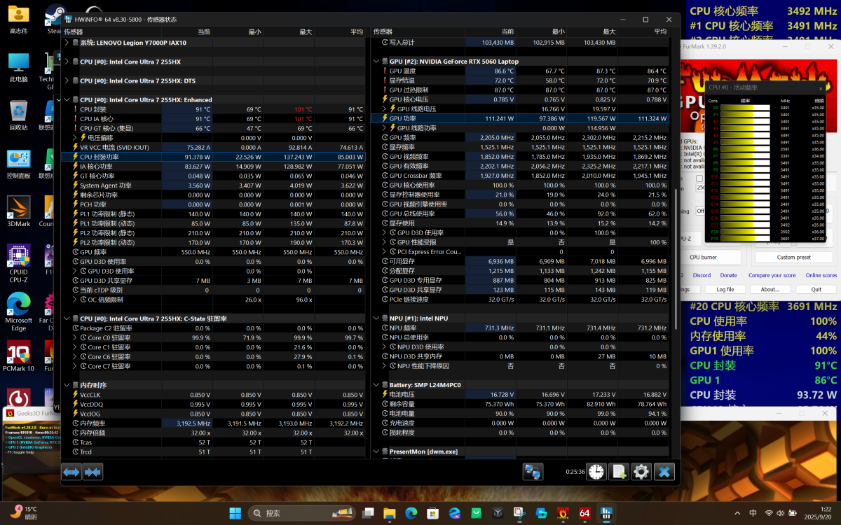 适用场景总结:联想拯救者 Y7000P 适合将游戏本作为主力生产力工具的用户——视频剪辑、3D 渲染、AI 开发等重载场景与 3A 游戏需求并存,且对性能释放有零容忍的追求。约 8244 元的价格,在 205W 双烤功耗面前显得极具说服力。