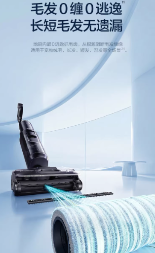 添可小折叠FoldX90则是“专精特新”的典范,设计逻辑完全围绕“空间优化”。其90°折叠设计将机身厚度压缩至9.6cm,重量仅3.9kg,实现“一杆直达”床底、沙发底,无需弯腰。其“折叠即热水”的智能联动设计尤为巧妙:机身折叠时,系统自动切换至热水洗地模式,利用约60℃热水增强对厨房油污的乳化分解能力。毛发0缠0逃逸系统搭载全新升级的防缠抓毛梳齿,从根源解决毛发缠绕。60分钟超长续航配合4000mAh大容量电池,可覆盖约300㎡全屋清洁。