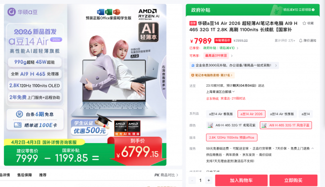 华硕a豆14 Air 2026精准契合年轻人用机需求,颜值、便携、性能、AI、续航、拓展全面能打,既是随身时尚单品,也能胜任办公、创作、娱乐等多场景,堪称年轻人的随身AI生产力神器。目前该机正在京东热售,搜索#华硕a豆14 Air 2026#即可了解更多,购机可享6期免息,晒单返100E卡、加赠云朵包,还可享a豆无忧服务计划(2年硬件上门服务、2年无限远程协助、2年好屏无忧换新、2年整机保修服务),部分地区可领取至高15%国家补贴,近期换机的小伙伴可闭眼冲!