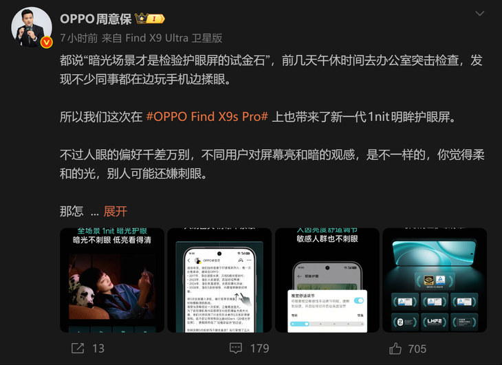 真护眼!OPPO Find X9s Pro首发新一代1nit明眸护眼屏