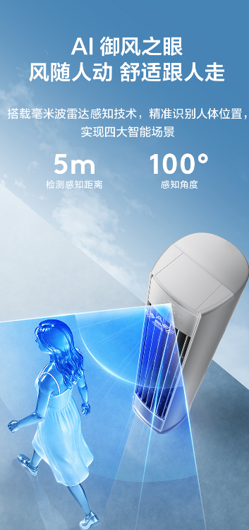 春季昼夜温差大,白天需降温、夜晚需保暖,传统空调送风模式单一,易出现“冷热不均”“直吹着凉”等问题。TCL小蓝翼·全域风Pro AI健康舒适空调搭载核心AI御风之眼,通过毫米波雷达实时感知人体位置与移动轨迹,实现“风随人动”“人近风柔/人远风强”的精准送风,从根源上解决直吹不适的痛点。
