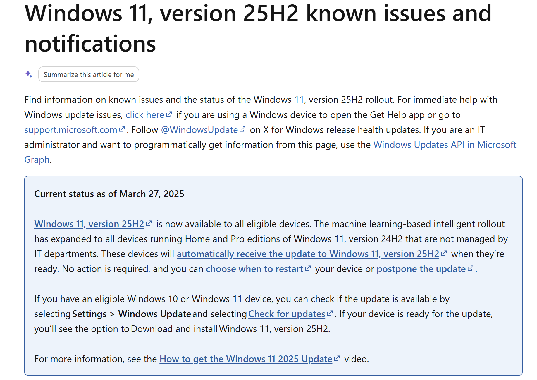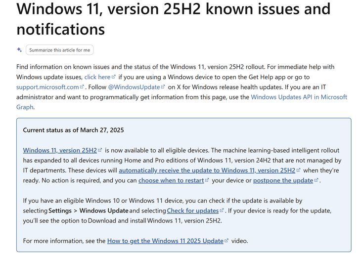 据TomsHardware报道,微软已正式启动Windows 11 25H2的强制推送计划,所有运行Windows 11 24H2家庭版和专业版的设备将被逐步升级至最新版本,此举是为了在2026年10月13日24H2版本正式停止支持前,完成全球设备的系统迭代,保持操作系统的统一维护和安全水平。根据微软官方支持页面信息,本次强制升级采用“基于机器学习的智能分发”机制,系统会自动评估设备状态并在判定其“准备就绪”时推送更新包,但微软并未公开该机器学习模型的具体判断标准和数据依据,这种不透明性引发了部分注重系统控制权用户的质疑。