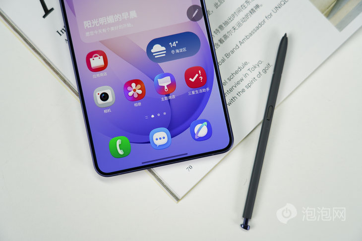 机身底部左侧为S Pen插槽,这支手写笔支持高精度压感与低延迟响应,而且笔尖在书写的时候有一定的阻尼感,不会打滑,接近真实纸张的书写体验。