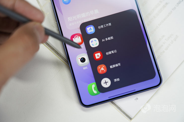 笔身上还有一颗多功能按键,通过它能够实现快捷截屏、速记等交互操作,将大屏的优势充分利用起来,也强化了手机的生产力属性。