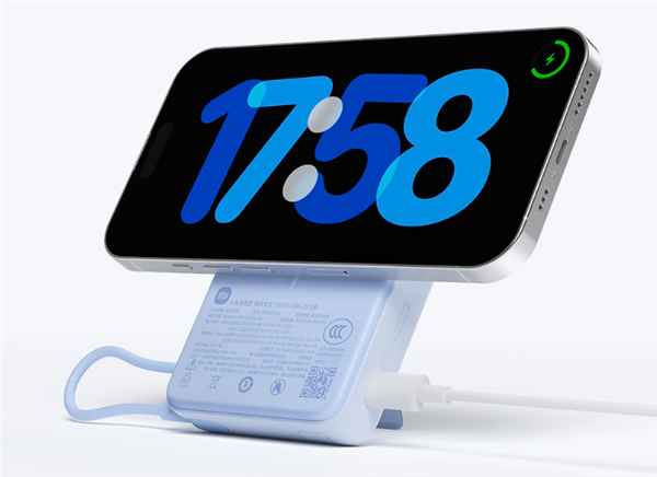 充电方面,支持有线、无线、边充边放、多设备同充四种模式,有线对小米机型最高33W快充,无线最高15W,可同时为三台设备补能,自带L型弯头USB-C线,兼容性覆盖主流设备。