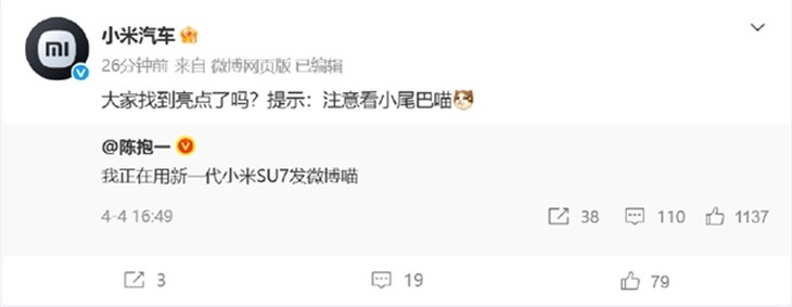 情绪价值拉满!小米汽车可以发微博了,还能显示小尾巴