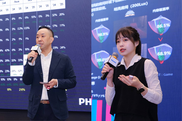 随后,紧扣阎总提出的 2026 年创新产品布局,LGD 显示器面板Team Leader Roy 与 Leah 先后登台分享。他们指出 2026 年 OLED不仅将保持稳健增长,且研发的新一代Tandem WOLED技术优势也将成为飞利浦显示器2026年在OLED电竞细分市场深耕的有力助益。