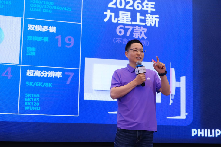 大会伊始,冠捷科技副总裁OBM显示器BU全球总经理兼中国区/亚太区总经理阎立东先生发表致辞。立足全球行业发展新形势,深度解读飞利浦显示器2026年核心发展战略,为品牌与渠道伙伴的协同发展指明了清晰的方向。阎总表示,当前全球格局正经历深刻变革,国内“稳中求进”的产业经济发展主基调,则为显示器行业的未来增长注入了强劲动力。随着6G星网、量子科技、具身智能等未来产业的蓬勃兴起,更是推动行业正式迈入了AI MNT元年。据此,飞利浦显示器独有的“AI+健康”理念,也必将成为2026年品牌迎来高速增长的双核驱动引擎。