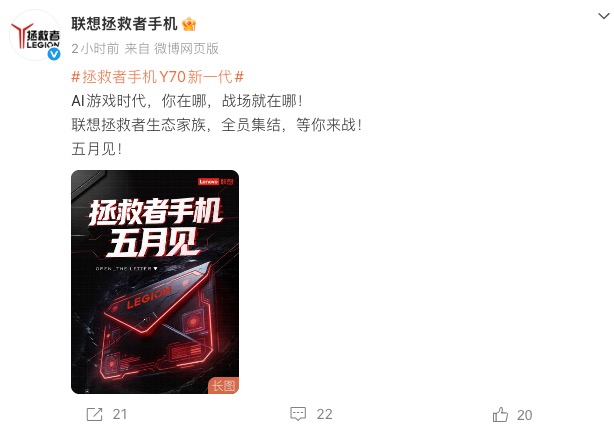 拯救者重回手机赛道!Y70新一代官宣五月亮相