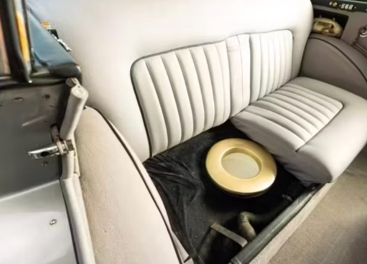 车载如厕并非全新概念,早在上世纪 50 年代,就有顶级豪车定制先例。美国富豪约瑟夫・J・马斯库奇(Joseph J. Mascuch) 曾联合意大利车身厂 Vignale,为自己 1954 款劳斯莱斯银魅(Silver Wraith)定制专属后排镀金便器,设计可直接向路面排污,堪称当时最奢华的车载 “黑科技”。但据历史资料,马斯库奇最终并未将其用作如厕,反而将这个镀金装置改作香槟冷却柜,成为汽车史上一段趣味轶事。