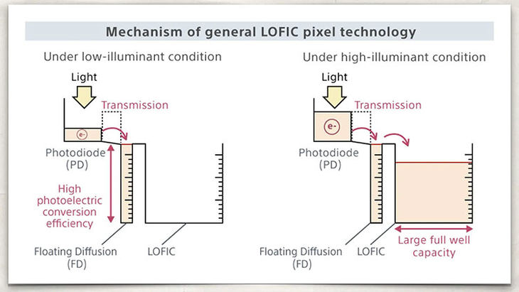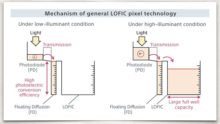 STARVIS 3 最大的突破在于低光和高动态范围的处理能力。索尼引入了所谓的 LOFIC(横向溢出集成电容)像素技术,简单来说,就是提升像素存储光电信号的能力。官方声称,STARVIS 3 的饱和电荷容量相比一代 STARVIS 提升了近 20 倍,带来了约 27% 的低光表现改善,以及单次曝光下高达 96dB 的动态范围,能够更清晰地捕捉近红外线光谱。